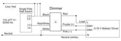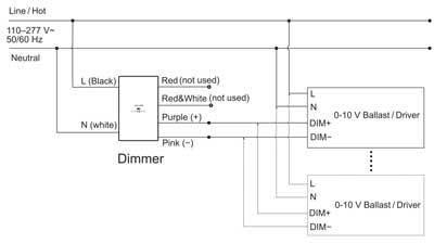 Wenn der Dimmer starten kann, das 0–10-V-Vorschaltgerät/der Treiber jedoch nicht startet, überprüfen Sie bitte, ob der stromführende Draht und der Neutralleiter am Eingang des Dimmers (oder des 0–10-V-Vorschaltgeräts/Treibers) vertauscht sind.