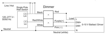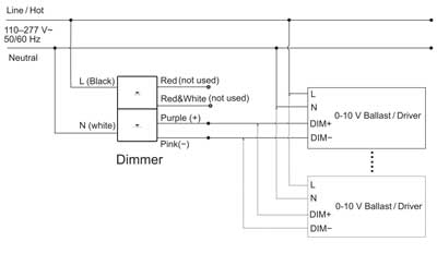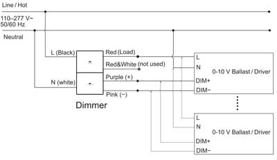 Wenn der Dimmer starten kann, das 0–10-V-Vorschaltgerät/der Treiber jedoch nicht startet, überprüfen Sie bitte, ob der stromführende Draht und der Neutralleiter am Eingang des Dimmers (oder des 0–10-V-Vorschaltgeräts/Treibers) vertauscht sind.