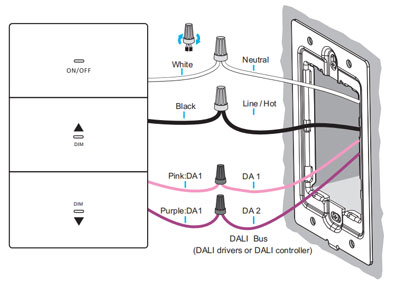 Der dali-2 dimmer 3-Tasten-Wanddimmerschalter ist ein einfarbiger DALI-Controller mit integrierter DALI-Bus-Stromversorgung. Er ist mit vorhandenen Standard-Wanddosen kompatibel und lässt sich problemlos auf Metallrahmen montieren. Das Kunststoffgehäuse besticht durch ein schlankes, luxuriöses Design und wird mit 5 Jahren Garantie geliefert.
