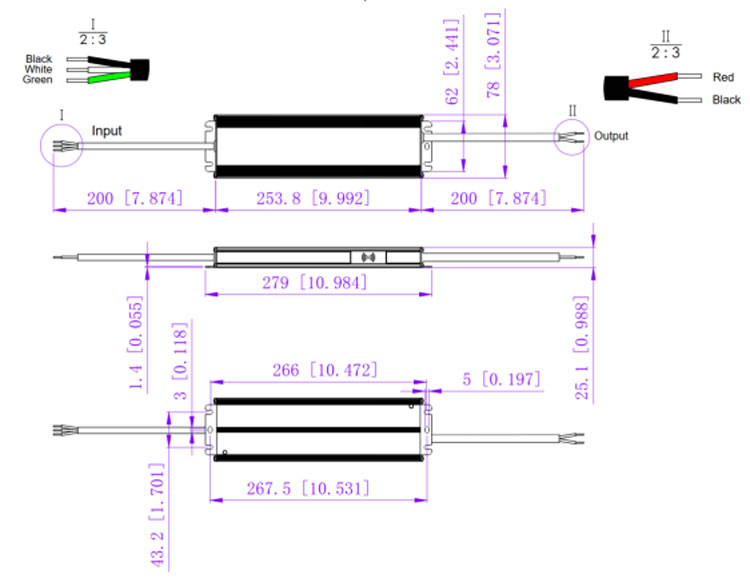 | Eingang | Spannungsbereich | 110–277 V AC | ||