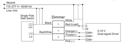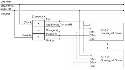 Wenn der Dimmer starten kann, das 0–10-V-Vorschaltgerät/der Treiber jedoch nicht startet, überprüfen Sie bitte, ob der stromführende Draht und der Neutralleiter am Eingang des Dimmers (oder des 0–10-V-Vorschaltgeräts/Treibers) vertauscht sind.