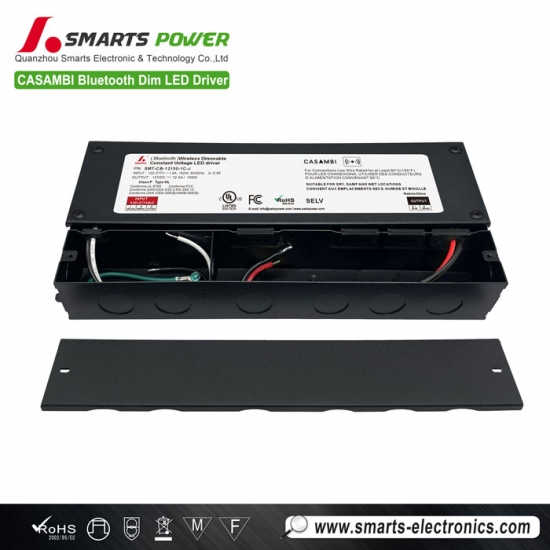 Das neue 150-W-Netzteil von SmartPower (12 V, 24 V, 48 V) Bluetooth CASAMBI dimmbarer LED-Treiber Es zeichnet sich durch ein integriertes Design mit Anschlussdose, hervorragende Wärmeableitung und stufenloses, flimmerfreies Dimmen von 0 bis 100 % aus. Es wird mit einer 7-jährigen Garantie geliefert.