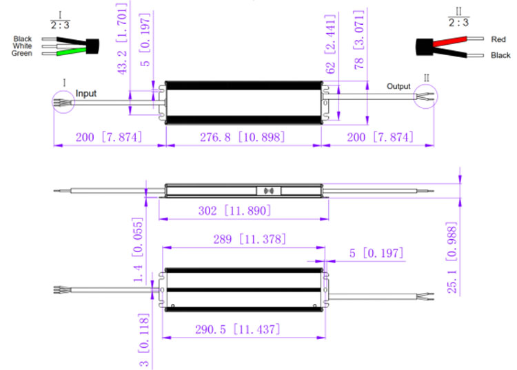 1. Eingangskabel 18AWG, Schwarzes Kabel (L), weißes Kabel (N), grünes Kabel (G).