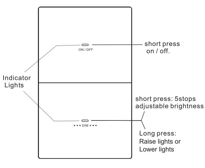 Hinweis: Wenn die Dimmtaste (langes Drücken) die maximale oder minimale Helligkeit erreicht. Die Kontrollleuchte blinkt langsam |