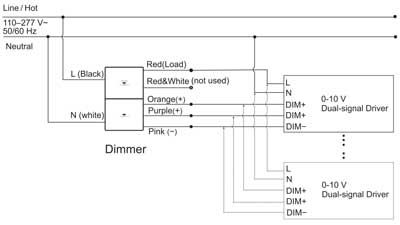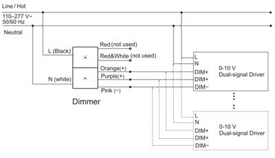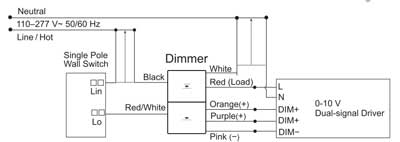 Wenn der Dimmer starten kann, das 0–10-V-Vorschaltgerät/der Treiber jedoch nicht startet, überprüfen Sie bitte, ob der stromführende Draht und der Neutralleiter am Eingang des Dimmers (oder des 0–10-V-Vorschaltgeräts/Treibers) vertauscht sind.