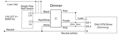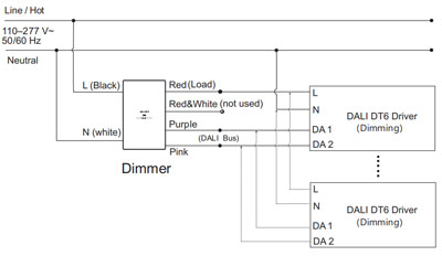 Hinweis 2: Verbinden Sie das AC-Eingangskabel (L) des DALI-Treibers mit dem Lastkabel (rot) des Dimmers.