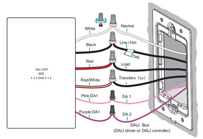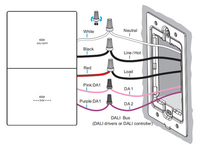 Der Tastdimmer Dali-2 Mit einem universellen Eingangsspannungsbereich von 100–277 VAC ist es mit vorhandenen Standard-Wanddosen kompatibel und lässt sich einfach in den Montagerahmen einbauen. Das Zwei-Tasten-Design ermöglicht das Schalten und Dimmen der Leuchten in der Gruppe. Die Bedienung ist einfach. Es ist keine zusätzliche Konfiguration erforderlich.