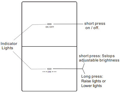 Hinweis: Wenn die Dimmtaste (langes Drücken) die maximale oder minimale Helligkeit erreicht. Die Kontrollleuchte blinkt langsam |