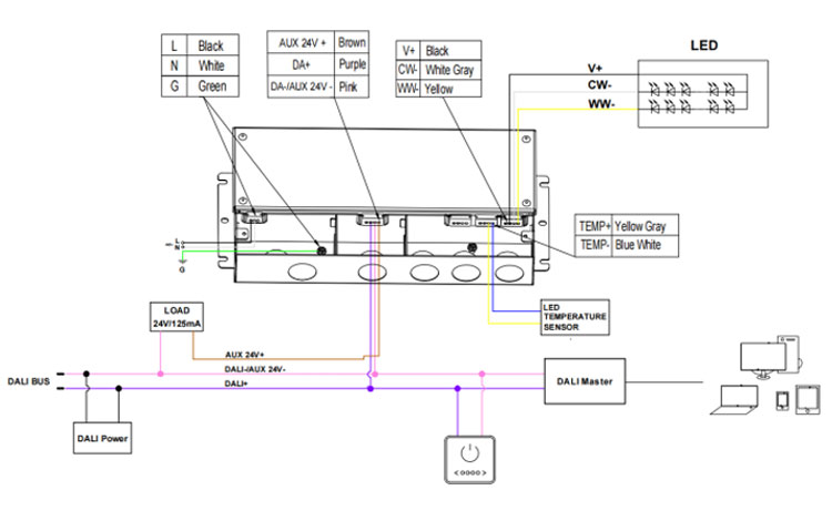 2. Der Modellname SMT - CA xx150-DP2J-Y bedeutet, dass eine Hilfsstromversorgung vorhanden ist, aber keine Lampentemperaturerkennung, sodass der LED-Treiber keine Verkabelung zur Lampentemperaturerkennung hat.