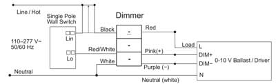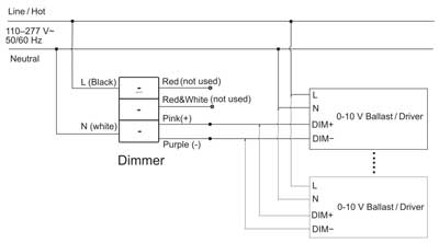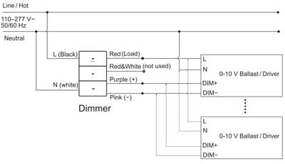 Wenn der Dimmer starten kann, das 0–10-V-Vorschaltgerät/der Treiber jedoch nicht startet, überprüfen Sie bitte, ob der stromführende Draht und der Neutralleiter am Eingang des Dimmers (oder des 0–10-V-Vorschaltgeräts/Treibers) vertauscht sind.