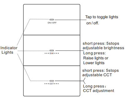 Hinweis: Wenn die Dimmtaste (langes Drücken) die maximale oder minimale Helligkeit erreicht. Die Kontrollleuchte blinkt langsam |