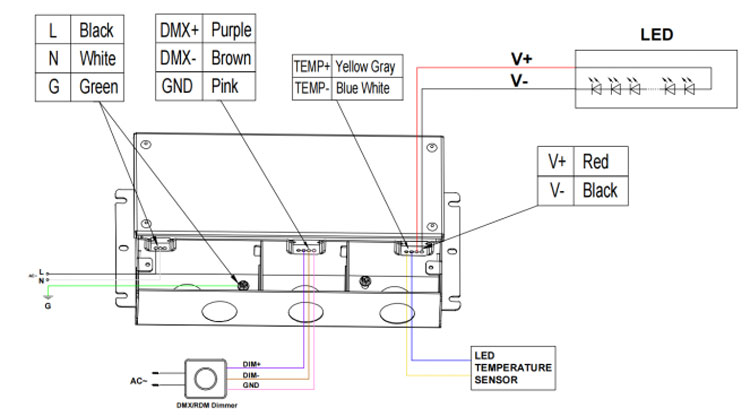 1. Der Modellname SMT - CA xx060-DMXJ bedeutet, dass keine Lampentemperaturerkennung vorhanden ist und der LED-Treiber daher keine Verkabelung zur Lampentemperaturerkennung hat.