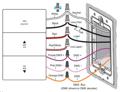 Hinweis 2: Verbinden Sie das AC-Eingangskabel (L) des DMX-Treibers mit dem Lastkabel (Rot) des Dimmers.