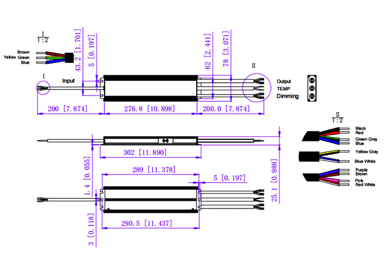 Ausgangskabel (12 V) | Schwarz (V+) Weißgrau (CW-) Gelb (WW-) (3*14AWG\3*2,08mm²) |